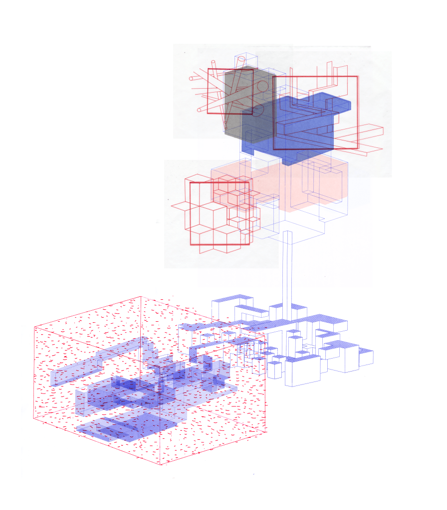 The Volume of Space is constructed with illustrator and a pen plotter. I was imagining a space map for a day-dream realm.